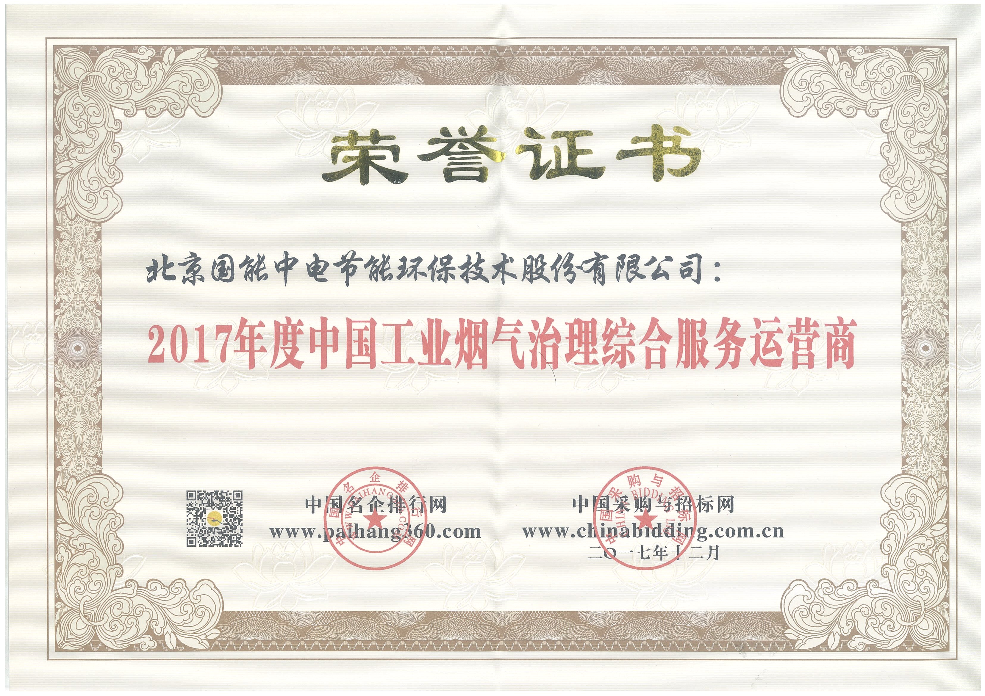 新年伊始,北京國能中電節能環保技術股份有限公司喜報頻傳,在采購與招標網舉辦的“2017年中國大氣治理招標采購綜合評價活動”中榮獲五項大獎: