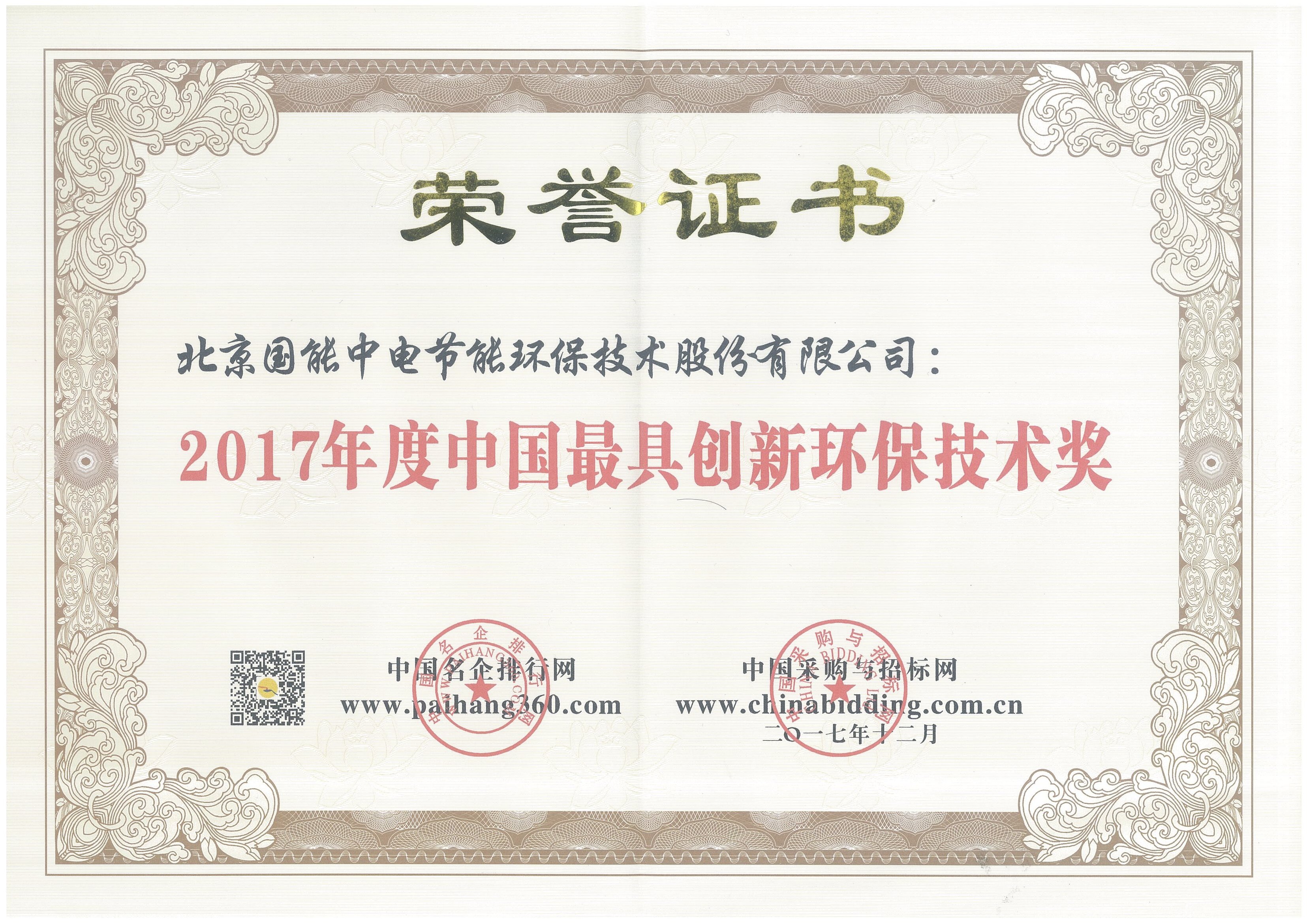國能中電喜獲“2017年度中國最具創新環保技術獎”等五項大獎